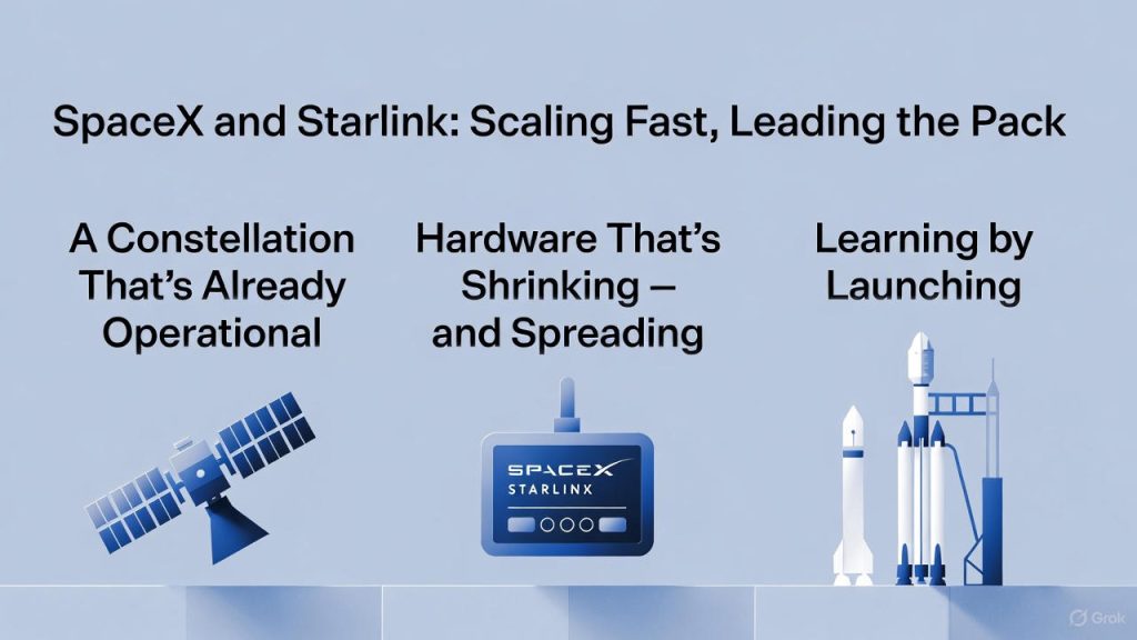 Starlink最大的优势之一在于速度。SpaceX自主发射卫星,在实际环境中进行测试,并持续升级系统。它不仅规划功能,还会实际飞行测试,观察故障,并快速推出新版本。这种反馈机制使Starlink在实际性能方面领先数年。.